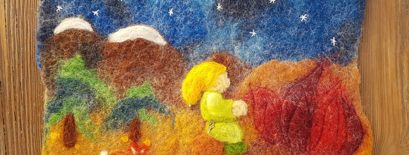 Winter. We just enjoyed snow and ice in the Netherlands. And 0 degrees camping in Israel. Time for a King Winter with a staff spreading snowflakes. Beautiful for on the season table, made this one for the antroposofic kindergarden.