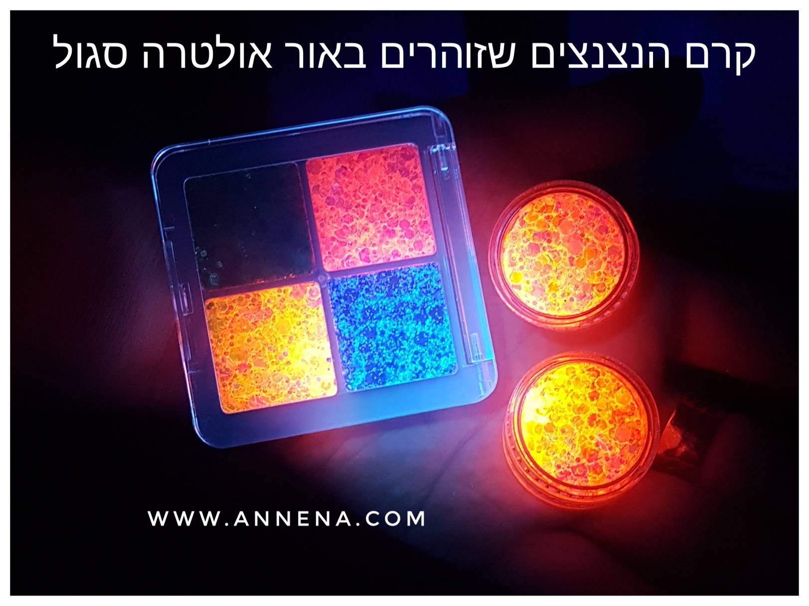 מספר צבעים של קרם הנצנצים זוהרים באור אולטרה סגול