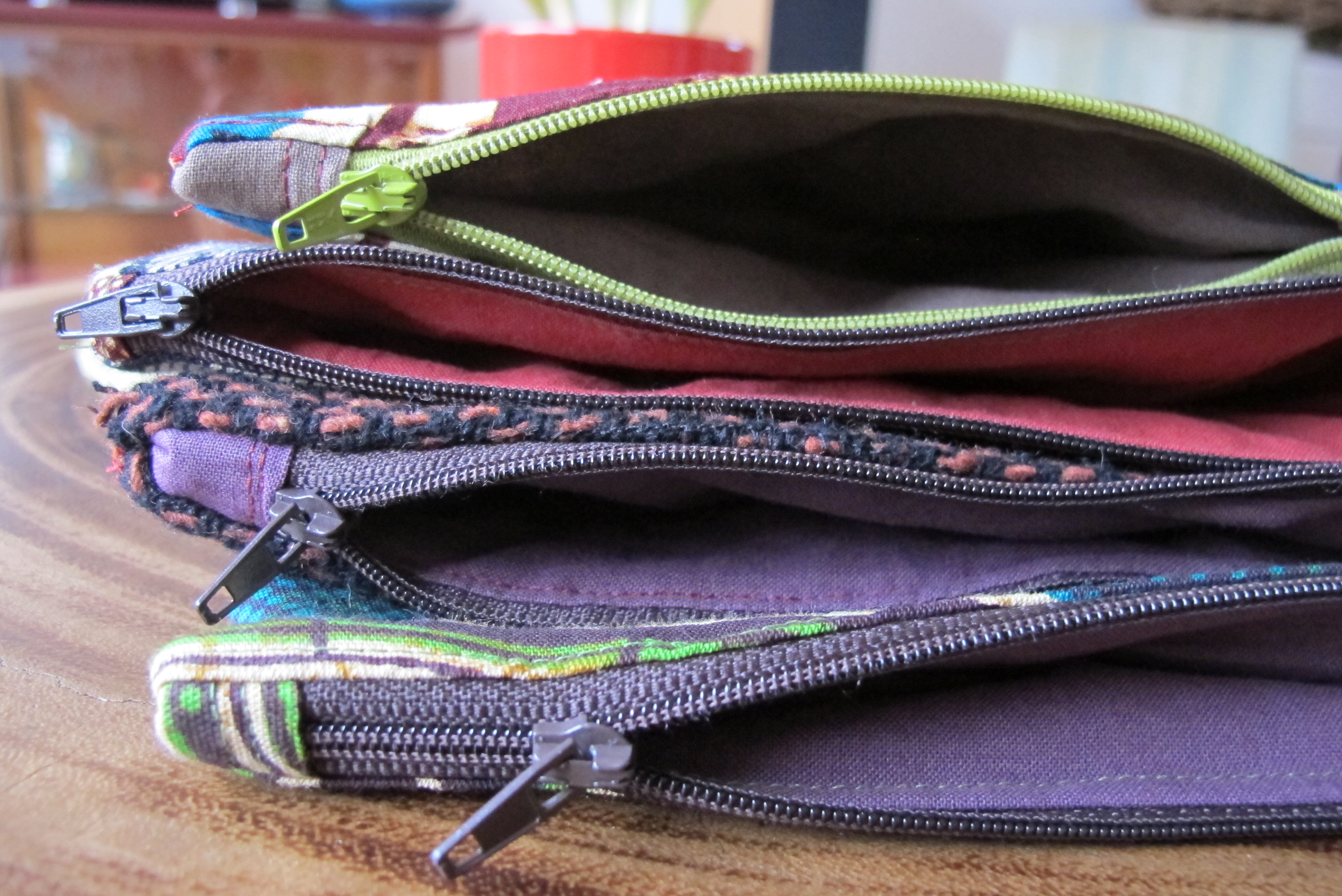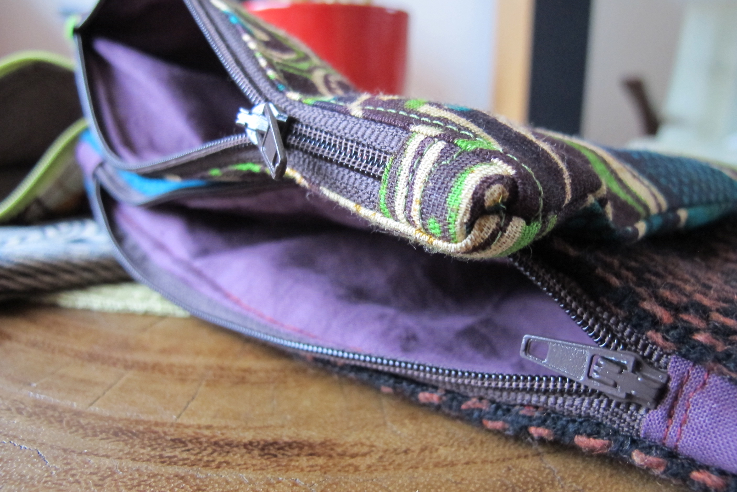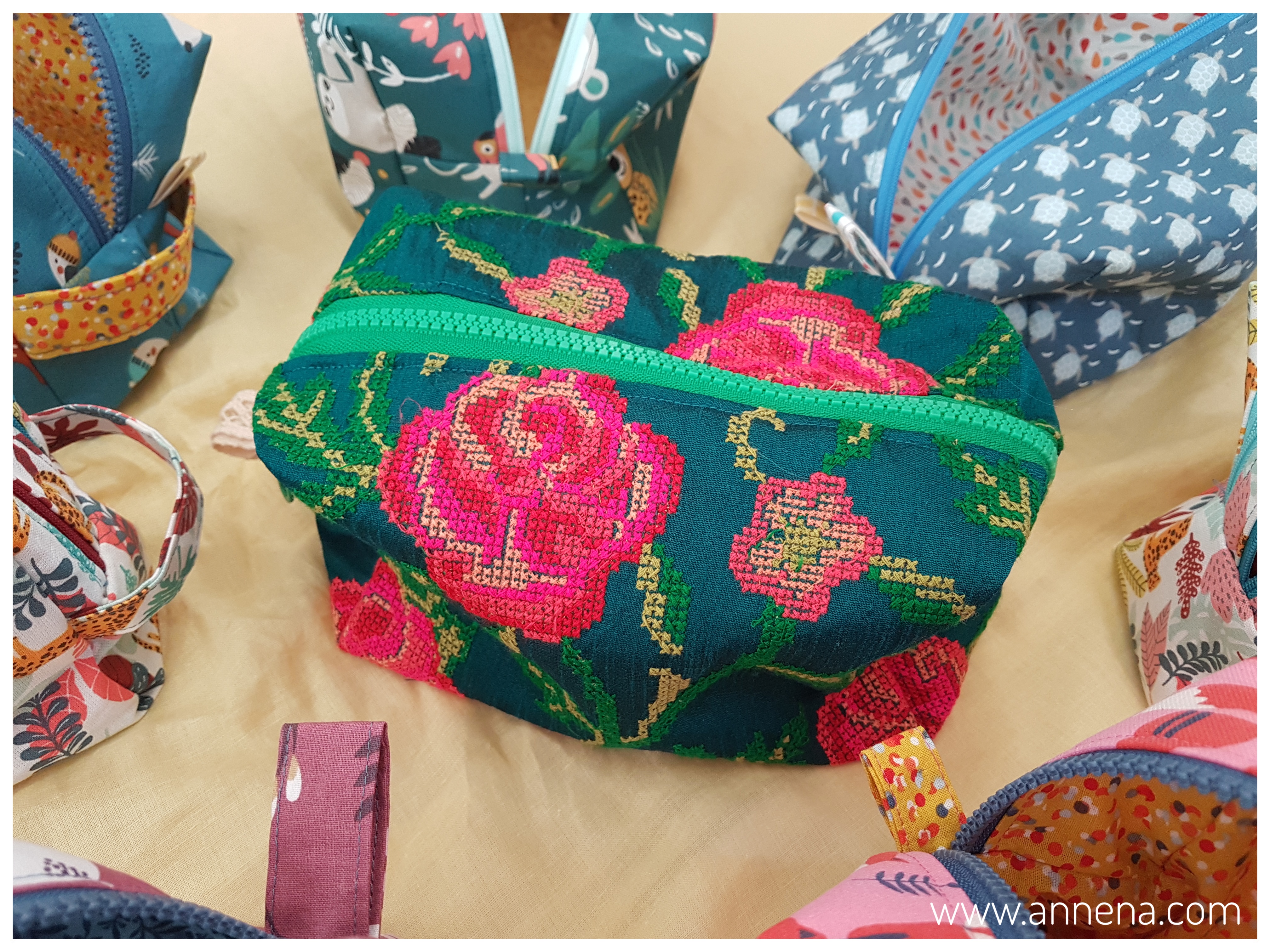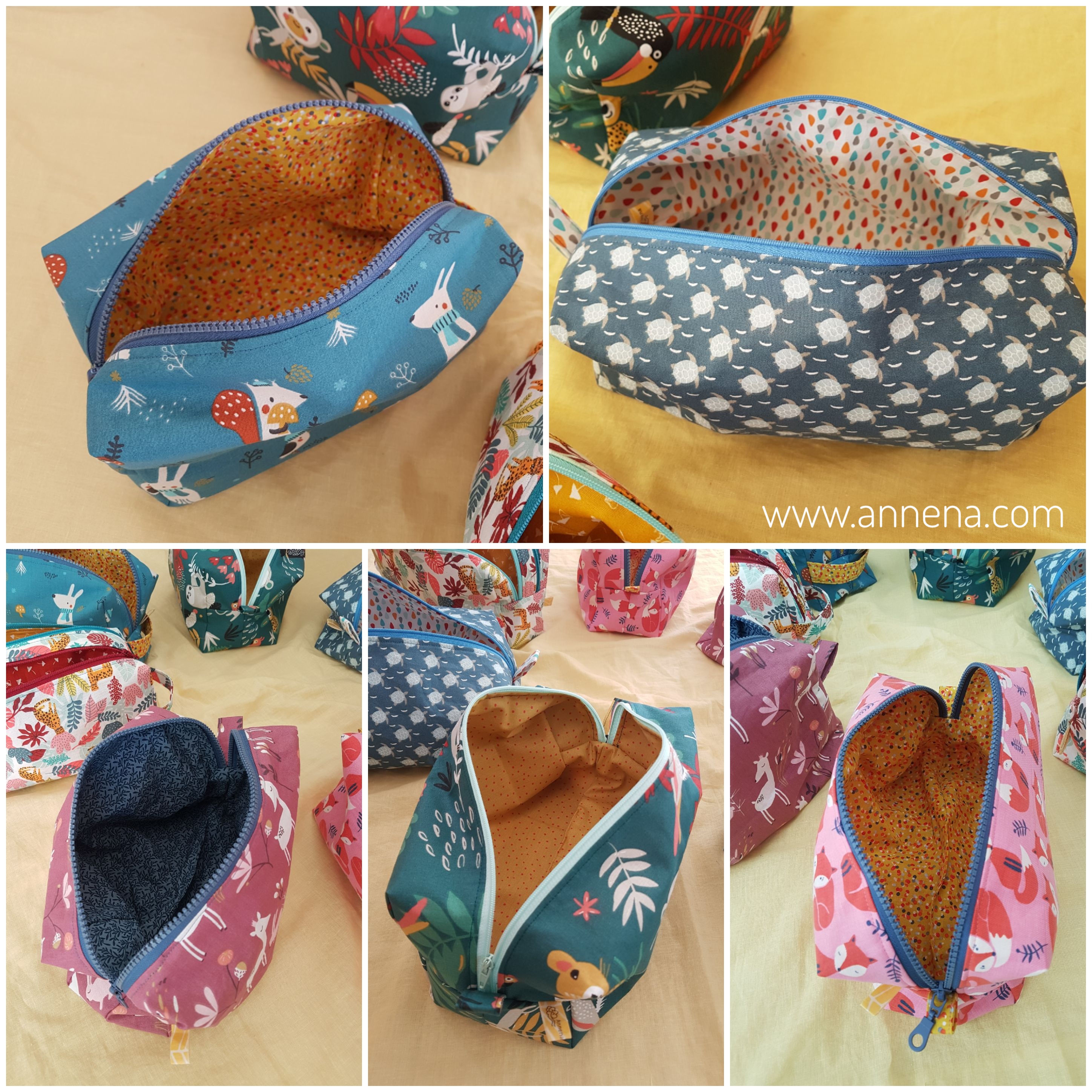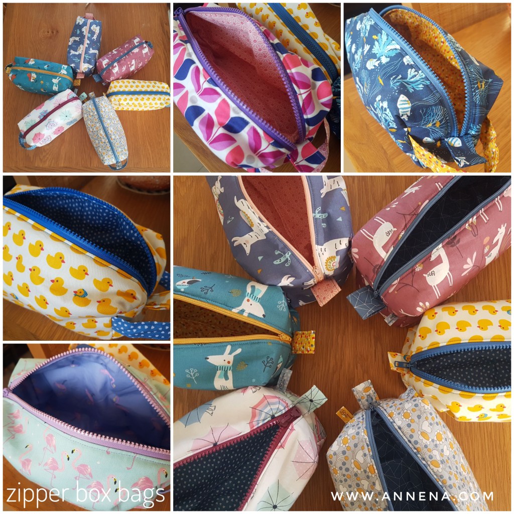 The box bag with zipper and lining, with playful colors and contrast. These bags store a lot! 100% cotton with an added layer of vlieseline for stability. Basic size 20x10x10cm, but any size possible. Price: with 1 zipper 110 shekel, with 2 zipper (2pockets) 145 shekel, quilted with soft batting and 1 zipper 130 shekel.