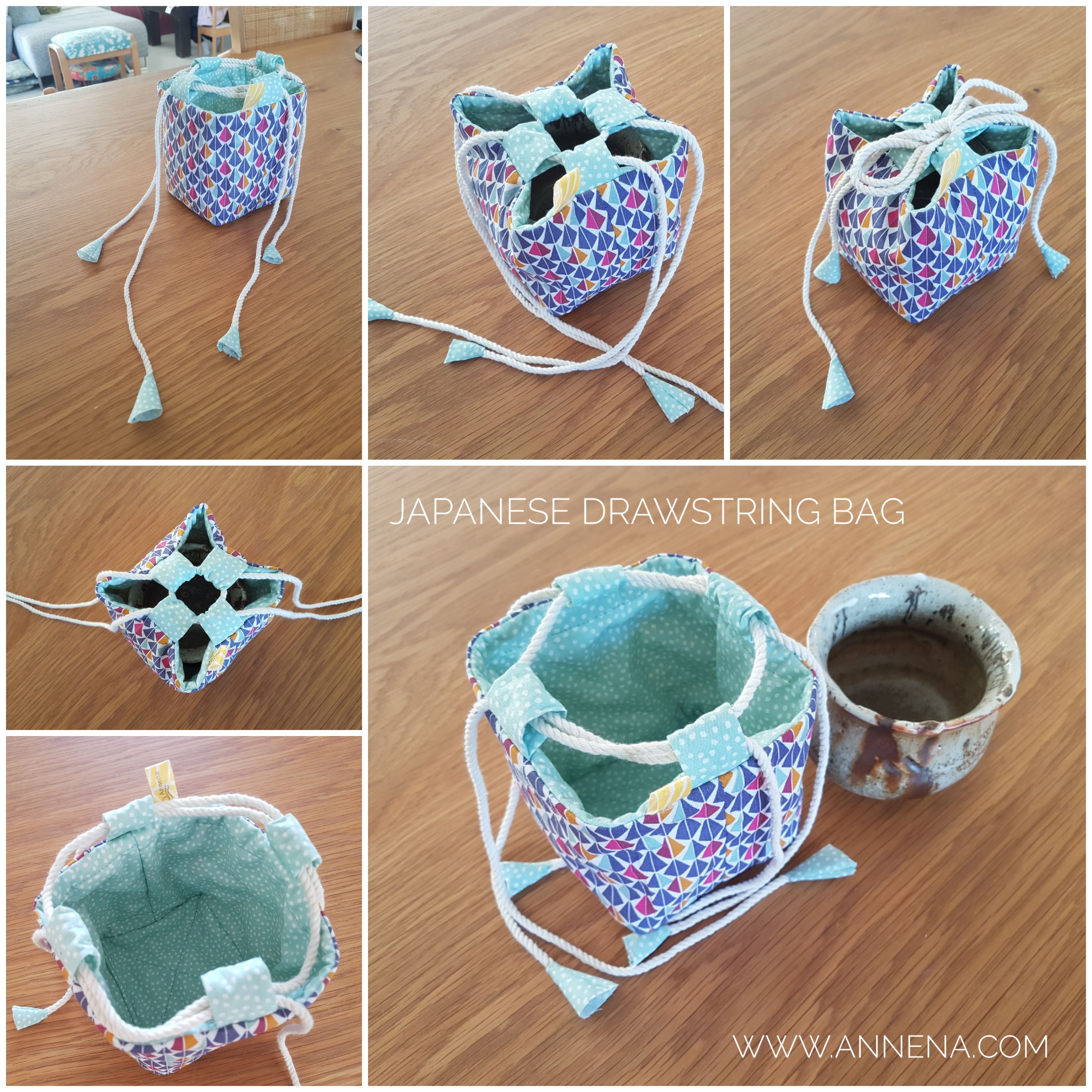 Japanese drawstring bag. Beautiful design which closed perfectly and looks pretty. Can be made with batting so it will keep precious objects safe. Any size possible, the example here is 9.5cm width and 10.5cm height, 100% cotton. 120 shekel.